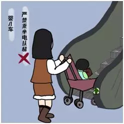 湖南電梯公司:推嬰兒車坐自動扶梯錯誤示范" alt="湖南電梯公司:推嬰兒車坐自動扶梯錯誤示范" />