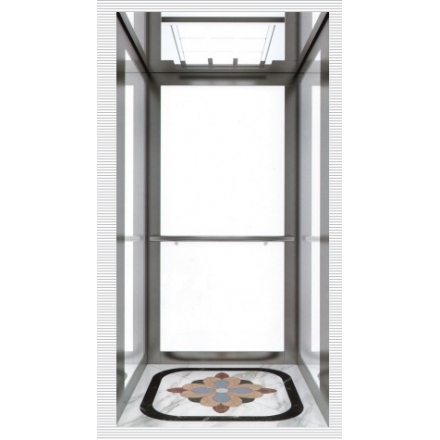 轎壁:發(fā)紋不銹鋼框架+透明玻璃轎壁